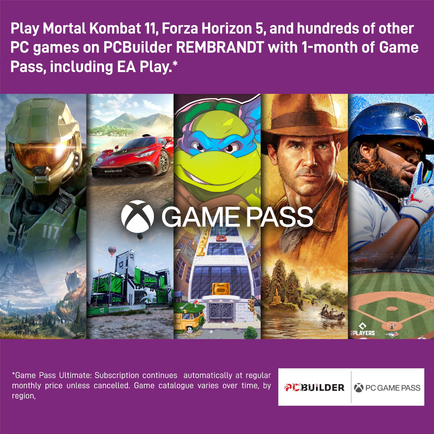 - Play over 100 high-quality PC games like Halo Infinite, Forza Horizon 5 and Teenage Mutant Ninja Turtles: Shredder’s Revenge with your new build and one month of PC Game Pass, including EA Play. With new games being added all the time, there’s always something new to play from day one.